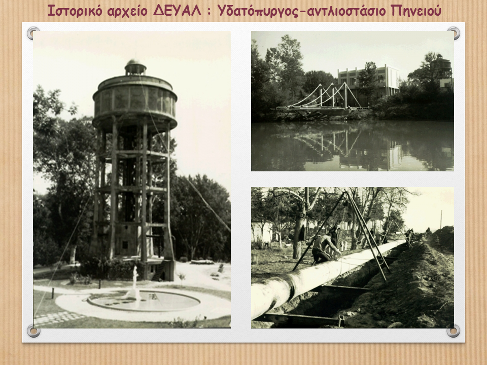 «Από τις αρχές του 20ου αιώνα, η Λάρισα, ο δήμος της και οι πολίτες του, αγωνίστηκαν συστηματικά για να ξεφύγουν από την καθυστέρηση και να εκσυγχρονίσουν την πόλη σε βασικότατους τομείς και υποδομές. Δύο από αυτούς ήταν ο ηλεκτροφωτισμός και η ύδρευση. Από το 1903 (Δημαρχία Αν. Ζαρμάνη) η πόλη διέθετε μελέτη για κατασκευή υδροηλεκτρικού έργου επί του Πηνειού (θέση Βερνέζι), ισχύος 24.000 ίππων, που είχε σκοπό να αξιοποιηθεί συνδυαστικά για τους δύο προαναφερόμενους σκοπούς. Οικονομικοί λόγοι δεν επέτρεψαν την αξιοποίηση αυτής της ιδέας και η πόλη οδηγήθηκε (απόφαση Δημοτικού Συμβουλίου 1909 – Δημαρχία Αχ. Αστεριάδη) σε παραχώρηση των δύο κρίσιμων τομέων της ύδρευσης και του ηλεκτροφωτισμού, για 50 χρόνια στην ιδιωτική Γαλλική εταιρία «Omnium».» Περισσότερα στον παρακάτω σύνδεσμο :