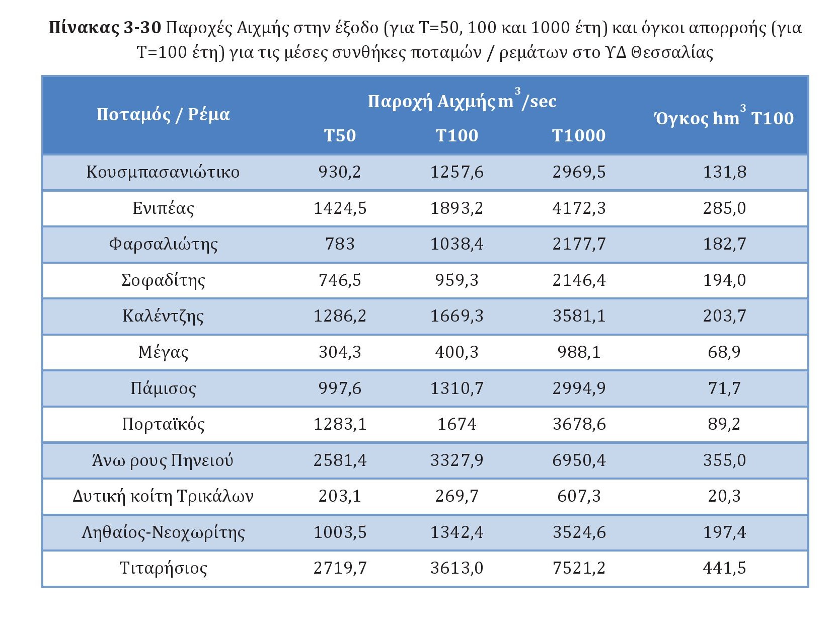 2025 – Παροχές αιχμής ποταμών ΥΔ Θεσσαλίας  – ΣΔΚΠ