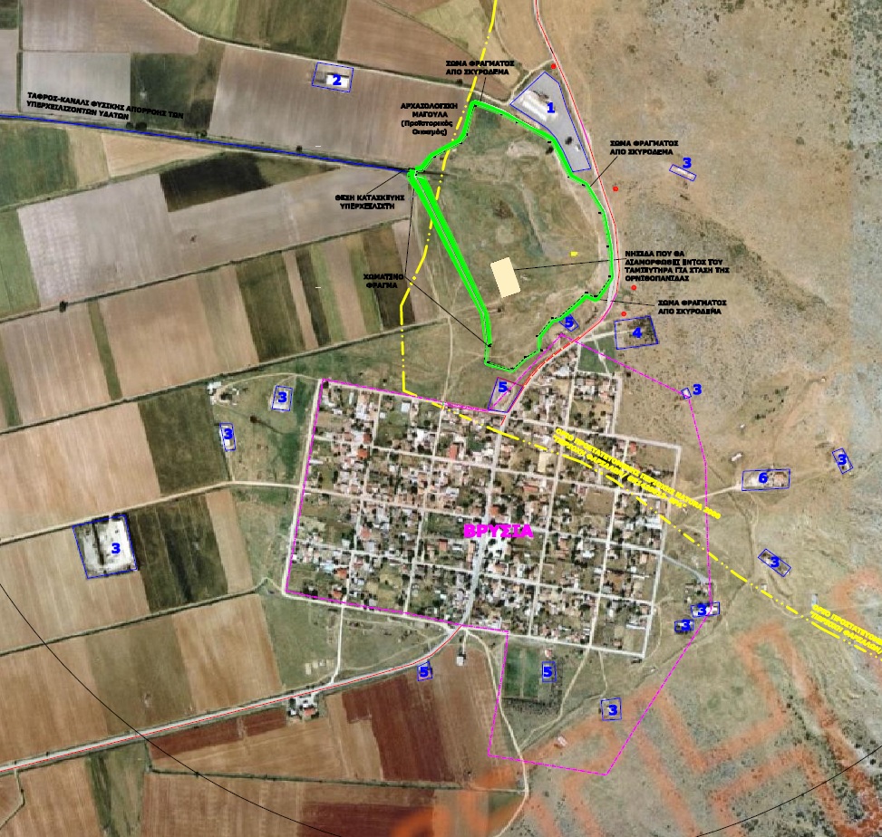 Η κατασκευή φράγματος για την αναστόμωση των πηγών Βρυσιών και η δημιουργία ταμιευτήρα για την συγκράτηση του νερού, στοχεύει στην αξιοποίηση του υδατικού δυναμικού των πηγών της περιοχής μελέτης, προκειμένου να γίνεται τεχνητός εμπλουτισμός του υδροφόρου ορίζοντα και να αντιμετωπιστει το πρόβλημα λειψυδρίας.