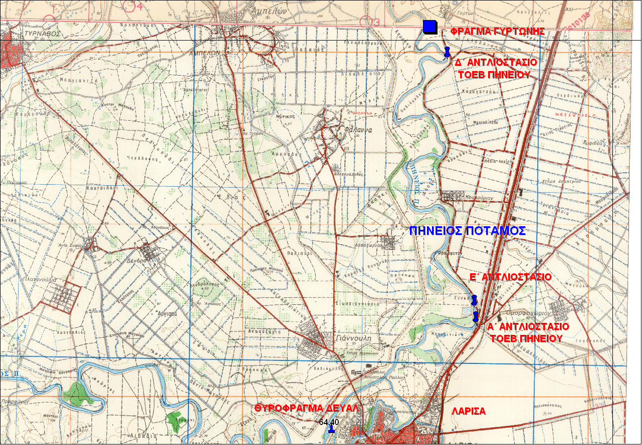Σκαρίφημα διαδρομής έργων μεταφοράς νερού με άντληση από το ρουφράκτη (φράγμα) Γυρτώνης στον ταμιευτήρα Κάρλας